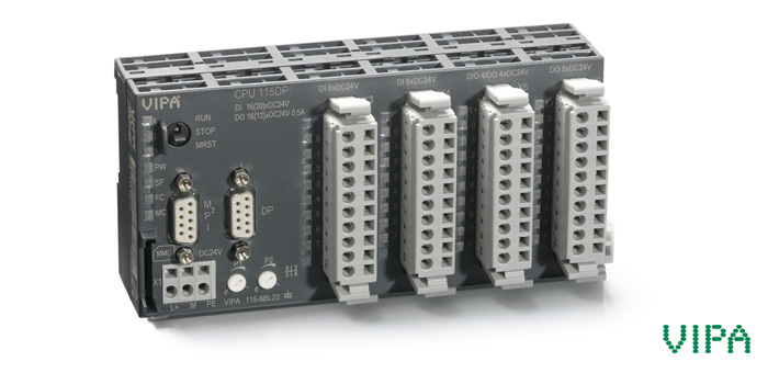 El PLC VIPA 100V es un Micro PLC programable con STEP®7 de Siemens o WinPLC7 – herramienta de programación de VIPA. Con un diseño compacto, el 100V provee una máxima expansión de hasta 160 puntos I/O de control, entre las I/O integradas en la CPU y los módulos de expansión. Este Micro PLC es especialmente indicado para aplicaciones pequeñas y de bajo costo.